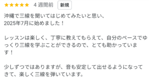 【京都 三線教室】「毎回のレッスンが楽しみ!」Google口コミ紹介