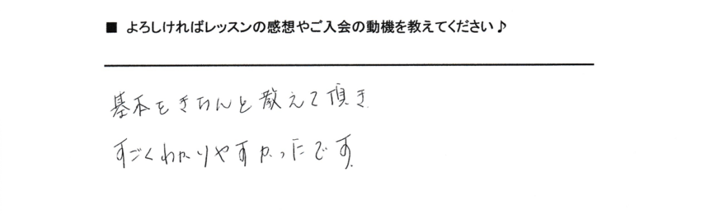 「基本をきちんと教えていただき、すごくわかりやすかったです」というご感想をいただきました。