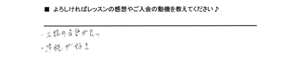 「三線の音色がいい。沖縄が好き」というご感想をいただきました。