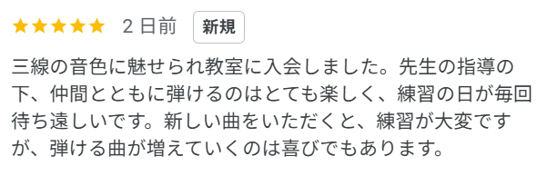 【鈴鹿 三線教室】「練習の日が毎回待ち遠しい」Google口コミ紹介