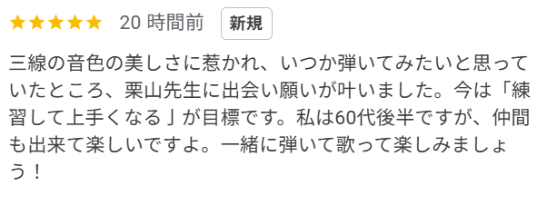 【鈴鹿 三線教室】60代からのスタート「仲間ができて楽しい」Google口コミ紹介