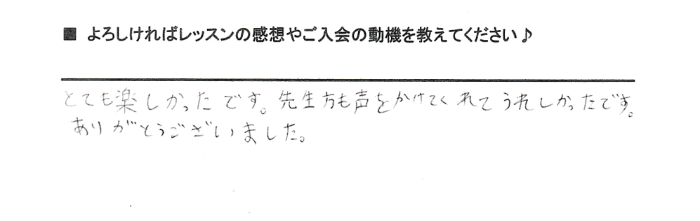 体験レッスンのご感想をいただきました