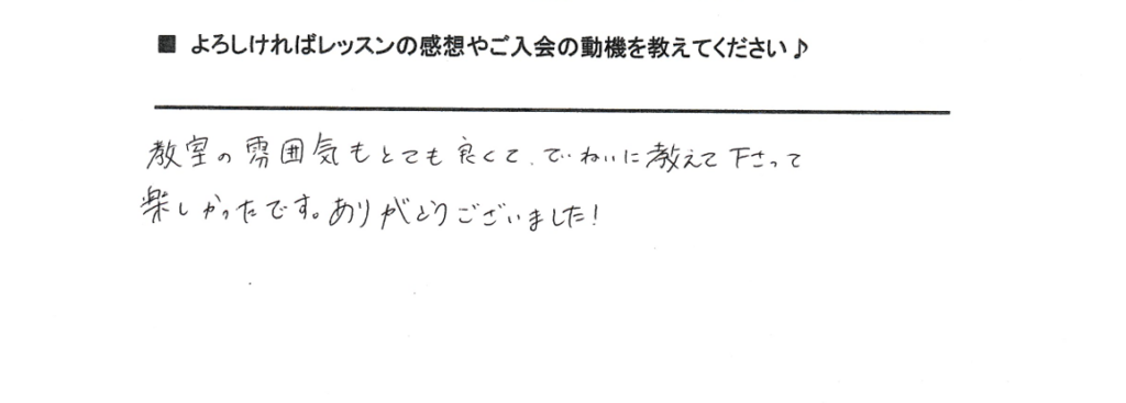 「教室の雰囲気もとても良くてていねいに教えてくださって楽しかったです。ありがとうございました!」